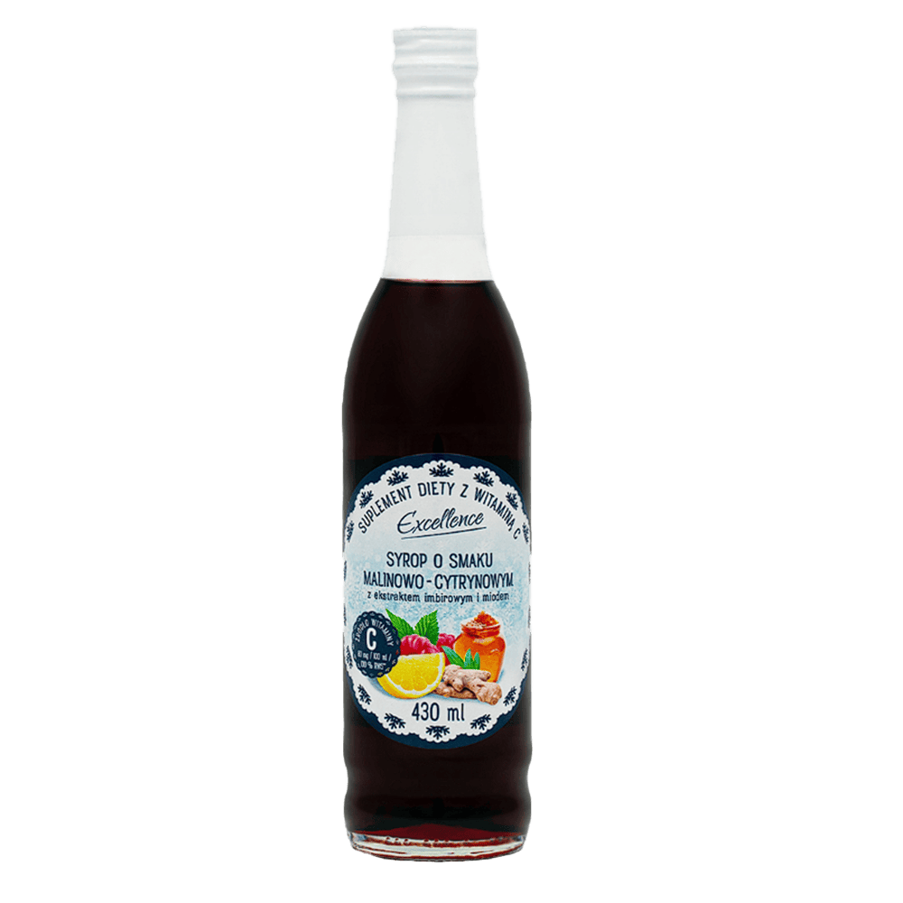 Excellence citrommal, gyömbérrel és mézzel ízesített Téli málnaszörp